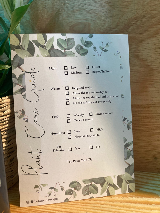 * a care card full of care guidance for the new addition.
